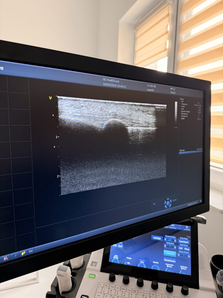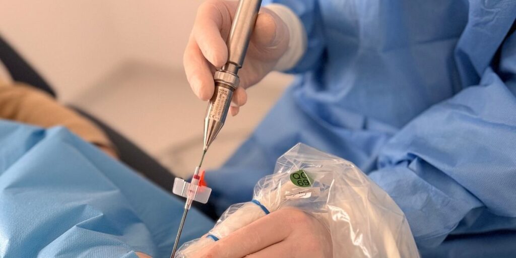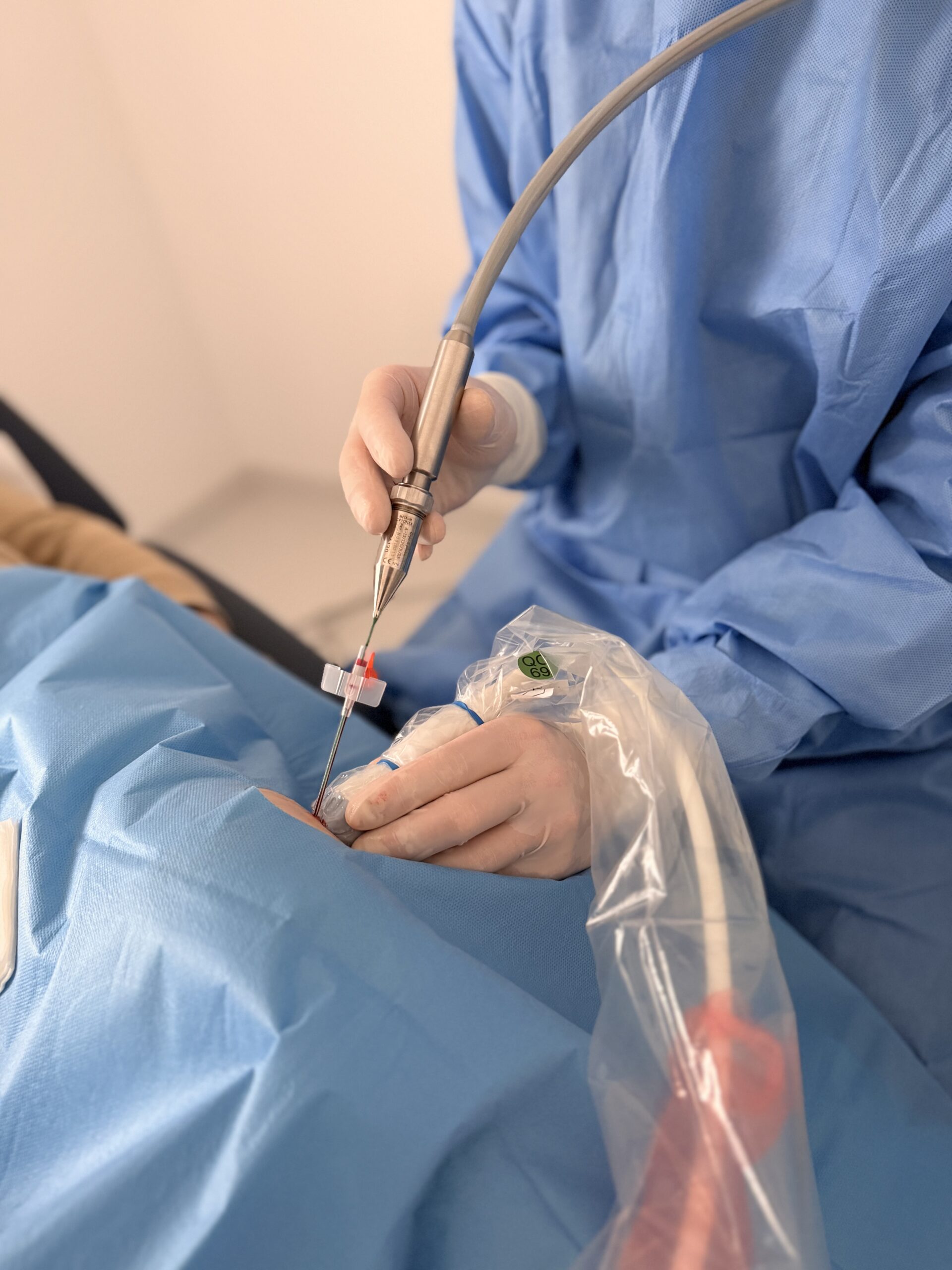 1. Precyzja pod kontrolą: Zabieg wykonuje lekarz specjalista, korzystając z podglądu USG. Dzięki temu mamy pewność, że końcówka krioaplikatora znajduje się dokładnie przy odpowiednim nerwie.