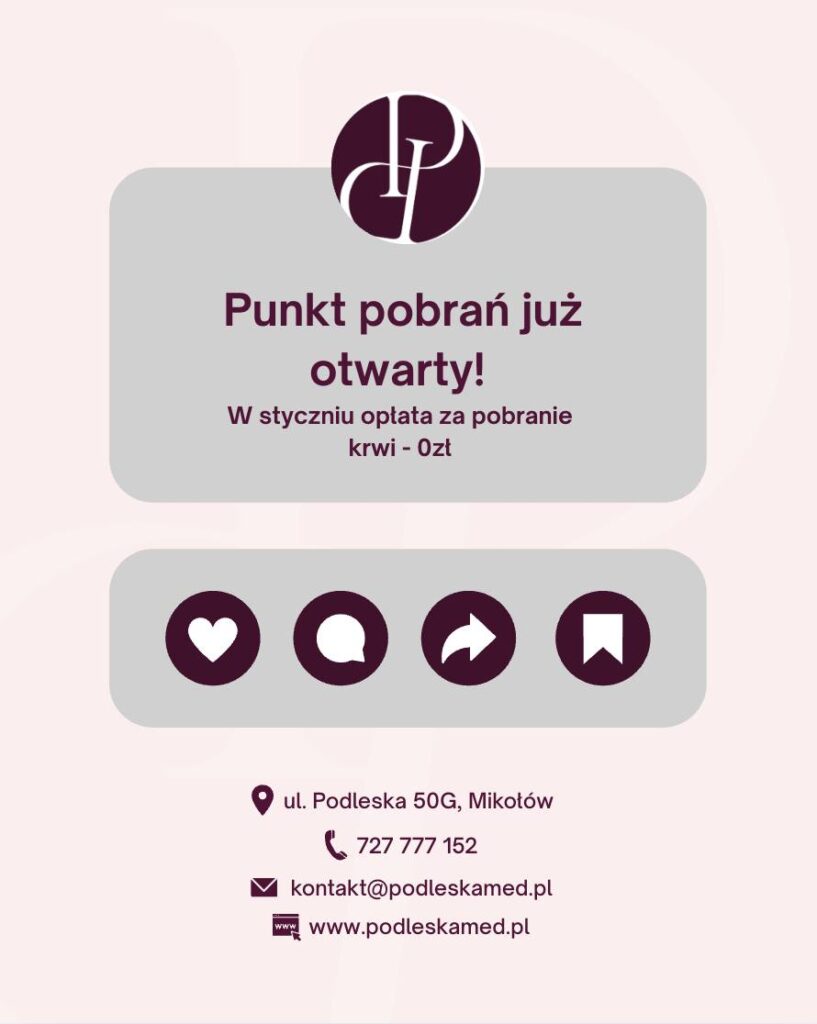 Badania krwi to jeden z najprostszych i najskuteczniejszych sposobów kontrolowania stanu zdrowia. Wiemy jednak, że dla wielu osób wiążą się one ze stresem, pośpiechem i długim czekaniem w kolejce – często na czczo. Dlatego w naszym Centrum Medycznym i Rehabilitacja Podleska uruchomiliśmy nowy punkt pobrań, w którym stawiamy przede wszystkim na komfort pacjenta.